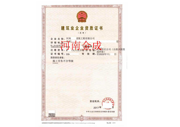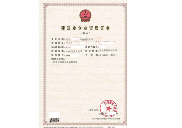 • 建筑業企業資質證書副